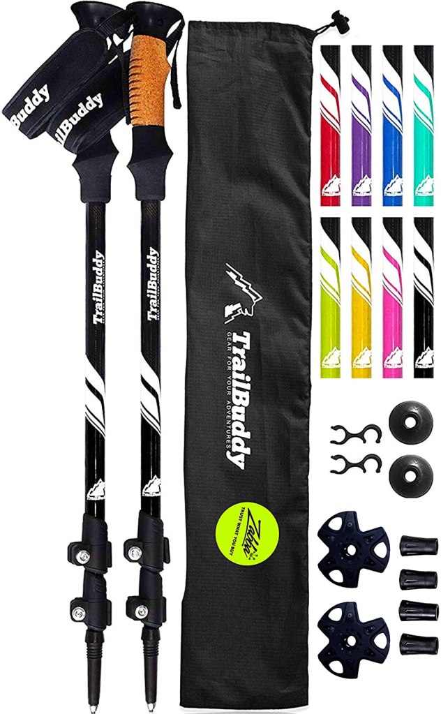 TOUGHER THAN CARBON FIBER – TrailBuddy Trekking Poles’ tough aluminum can withstand pressure and impact better than carbon fiber – crucial if hiking on rocky terrain or supporting heavier weight