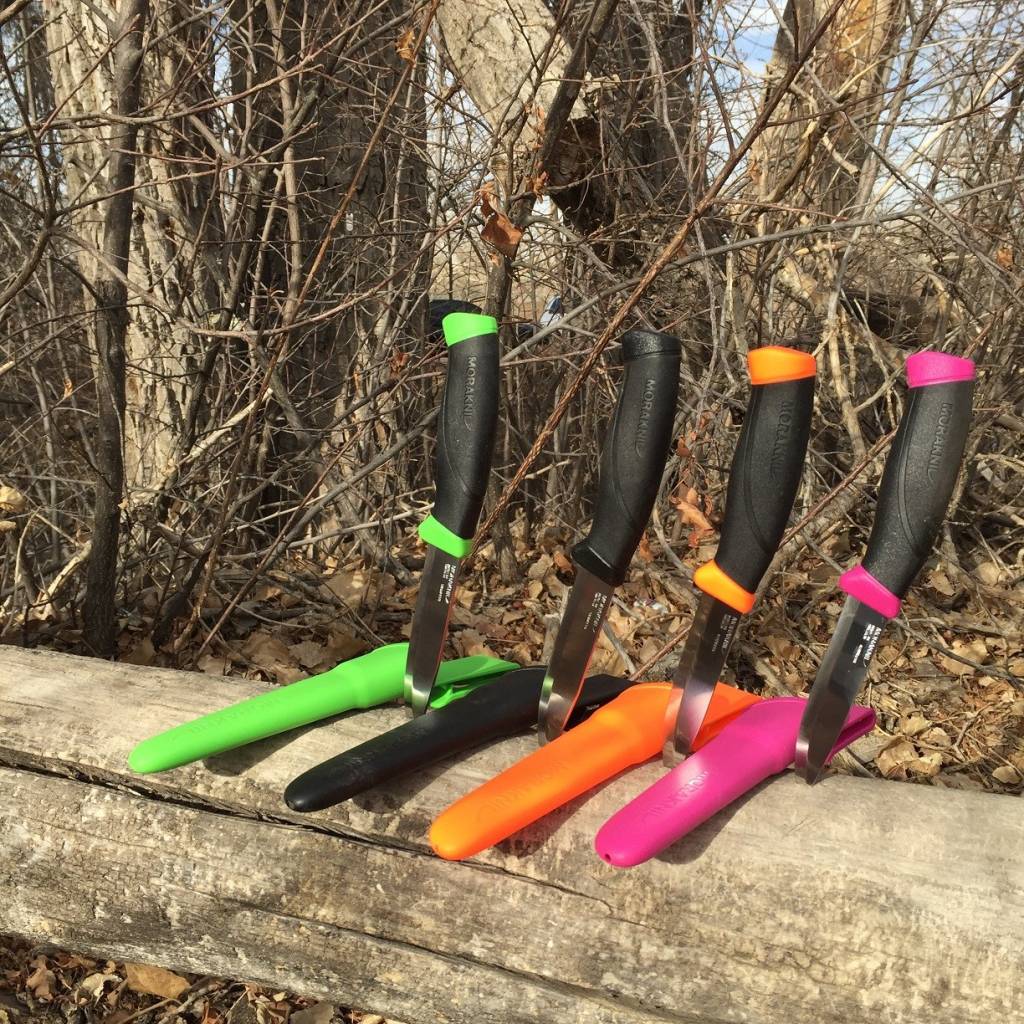 The Morakniv bushcraft knife is available in 9 colors. Gray, Black, Cyan, Desert Tan, Green, Magenta, Military Green, Navy Blue, and Orange.